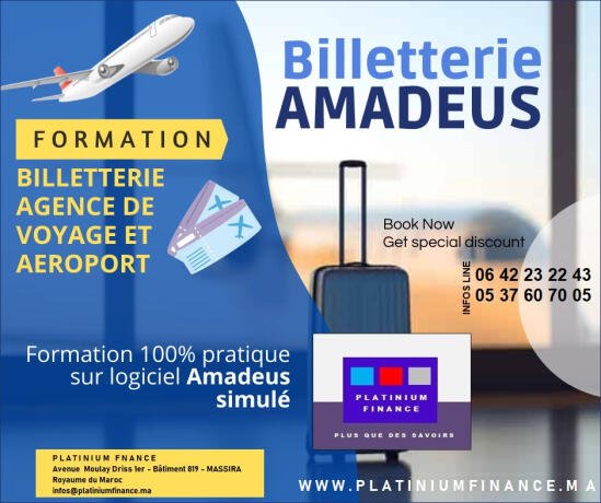 La société P L A T I N I U M F I N A N C E, acteur majeur de la formation continue au niveau national et régional, vous propose une formation pratique de haut niveau sur la plateforme : AMADEUS.